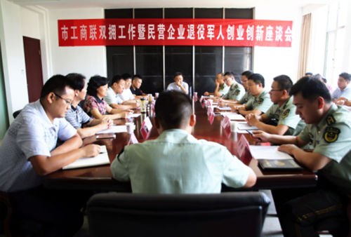 8月22日,巢湖市工商联组织召开双拥工作暨民营企业退役军人创业创新座谈会。参加座谈的有巢湖市人武部、驻巢部队负责人,退伍军人创新创业企业家代表和市委统战系统转业干部代表。